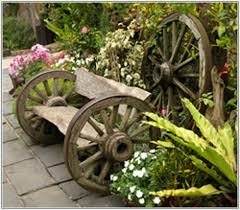 Antique Wooden Wheels/Wagon Wheels Provide a Creative Garden Back Drop